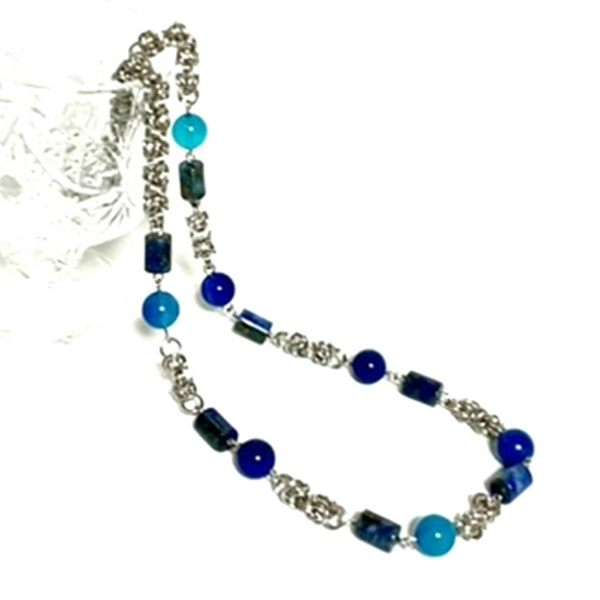 天然石のチェインメイルネックレスメノウ・ラピスラズリ・金属(ステンレス)、43㎝12,100円