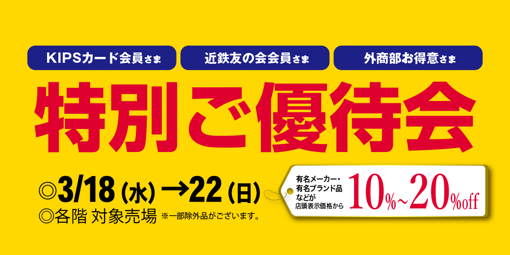 KIPSカード会員さま・近鉄友の会会員さま・外商部お...